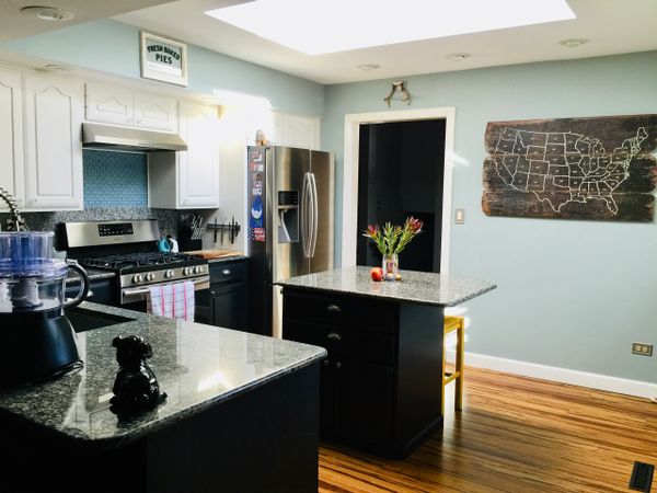 with beautiful updates that make it feel truly custom. Fresh interior paint in modern, inviting tones, updated lighting throughout, and custom design accents that add character and charm. Eye-catching shiplap above the fireplace creates a cozy focal point in the living area, while elegant wainscoting in the dining room adds a touch of classic style.